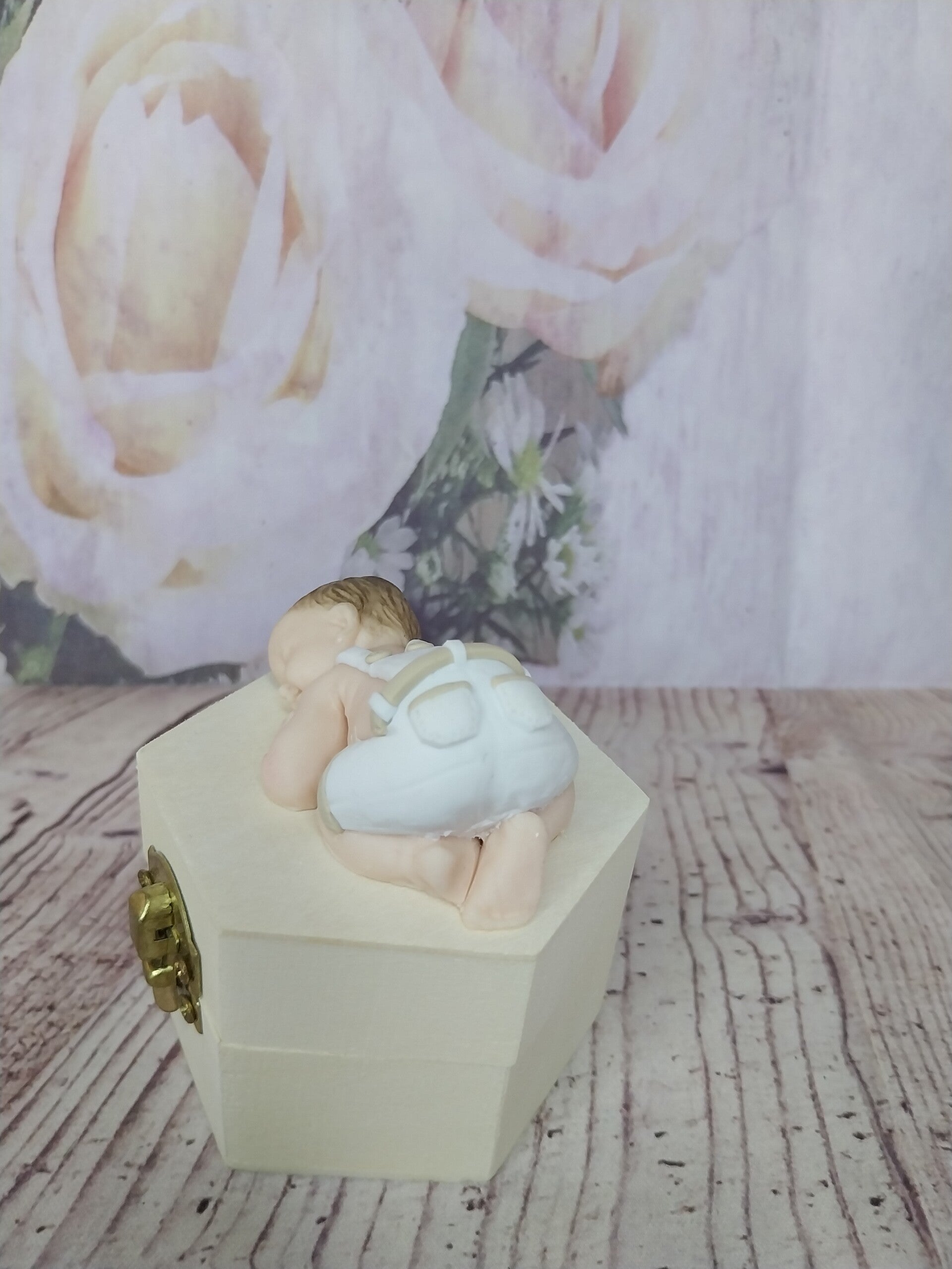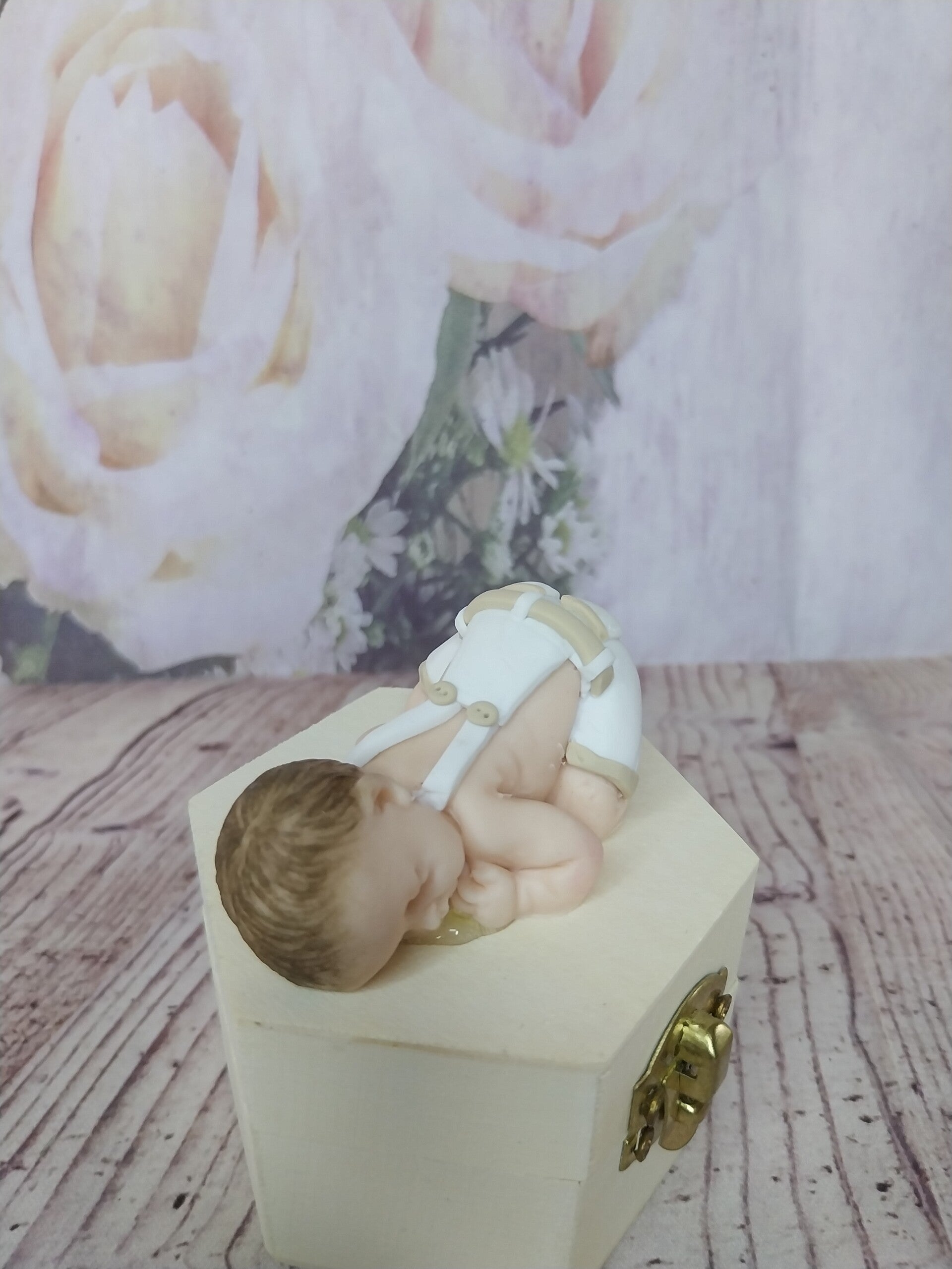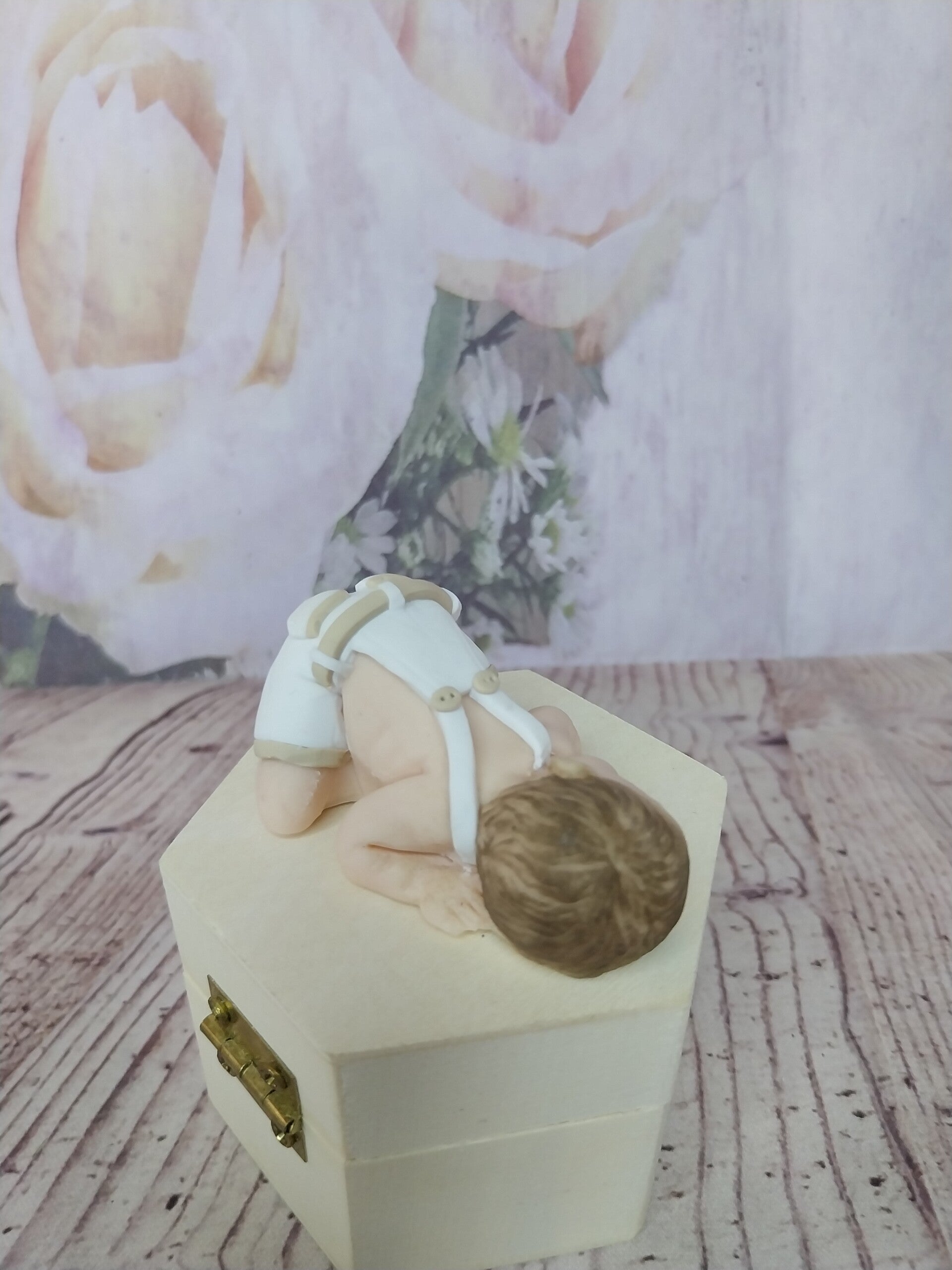 Figurine bébé fimo garçon en salopette blanc et beige