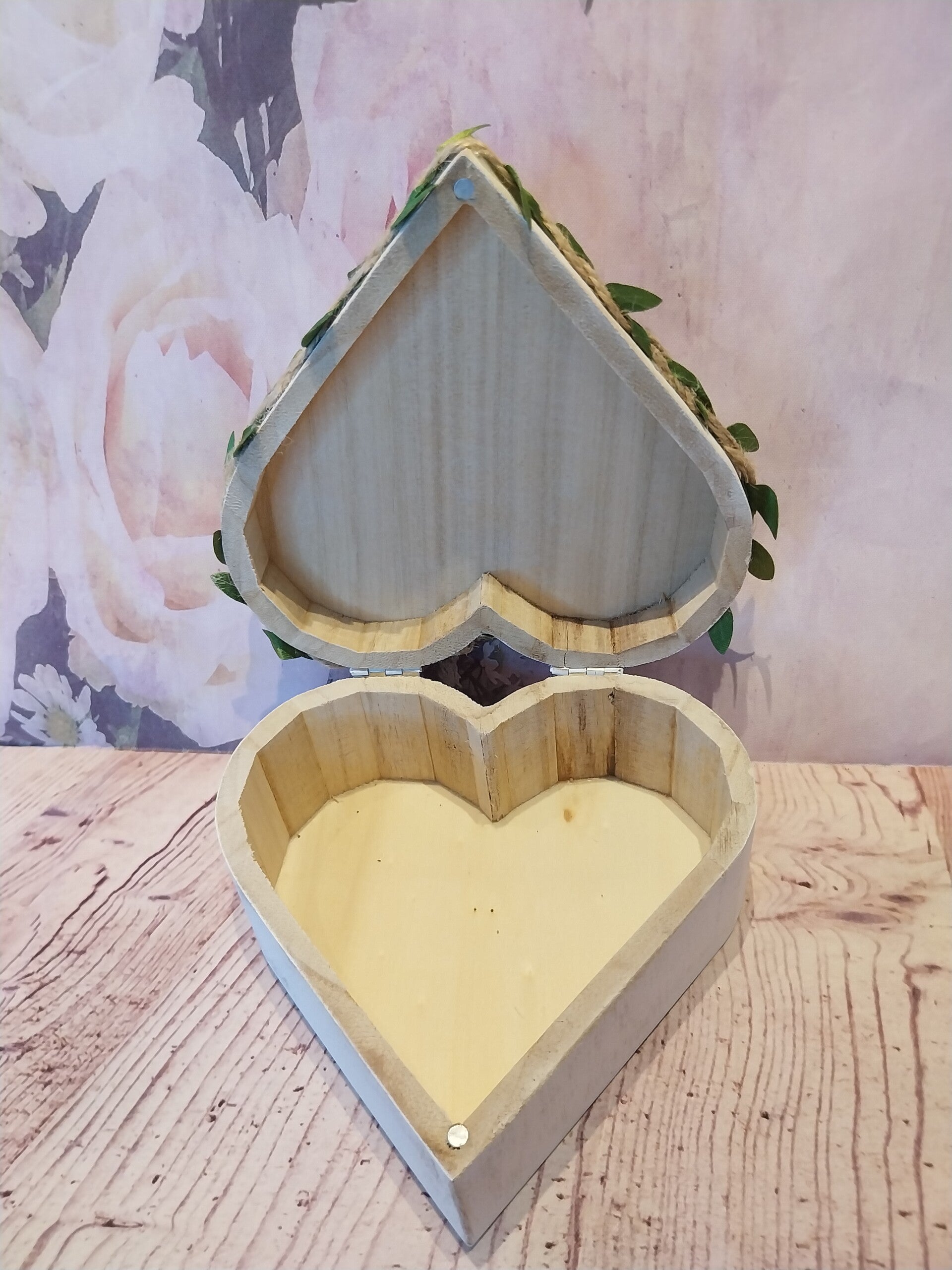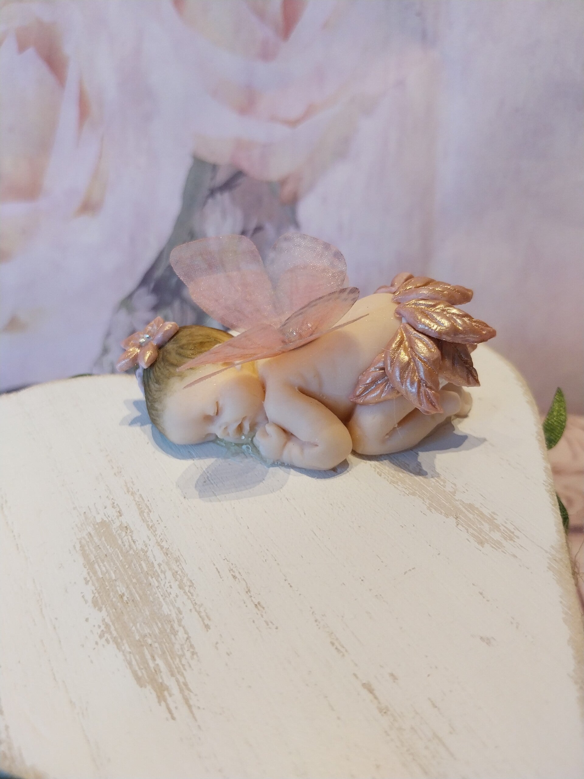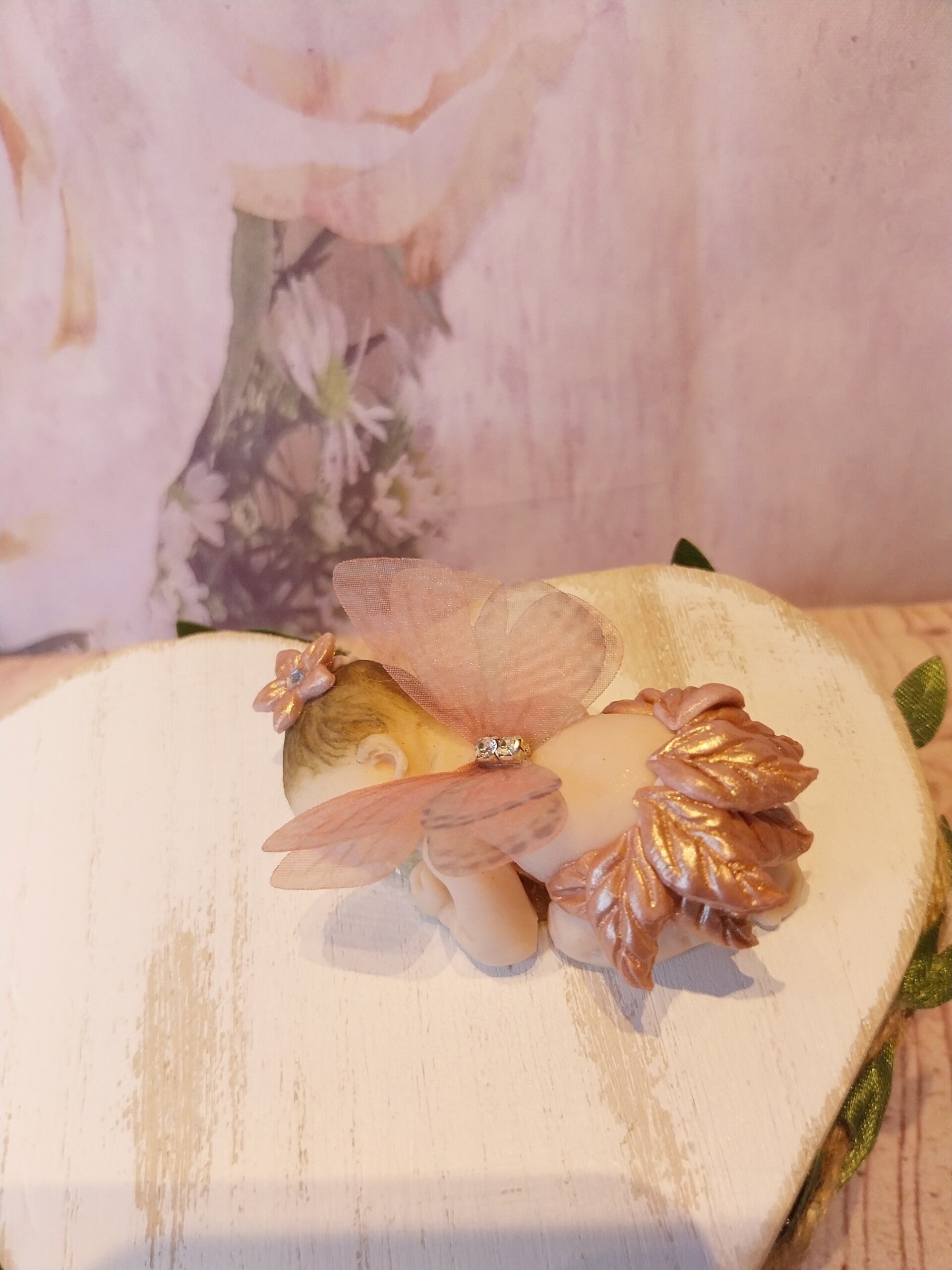 Boîte en forme d'un cœur en bois avec bébé fimo fille papillon