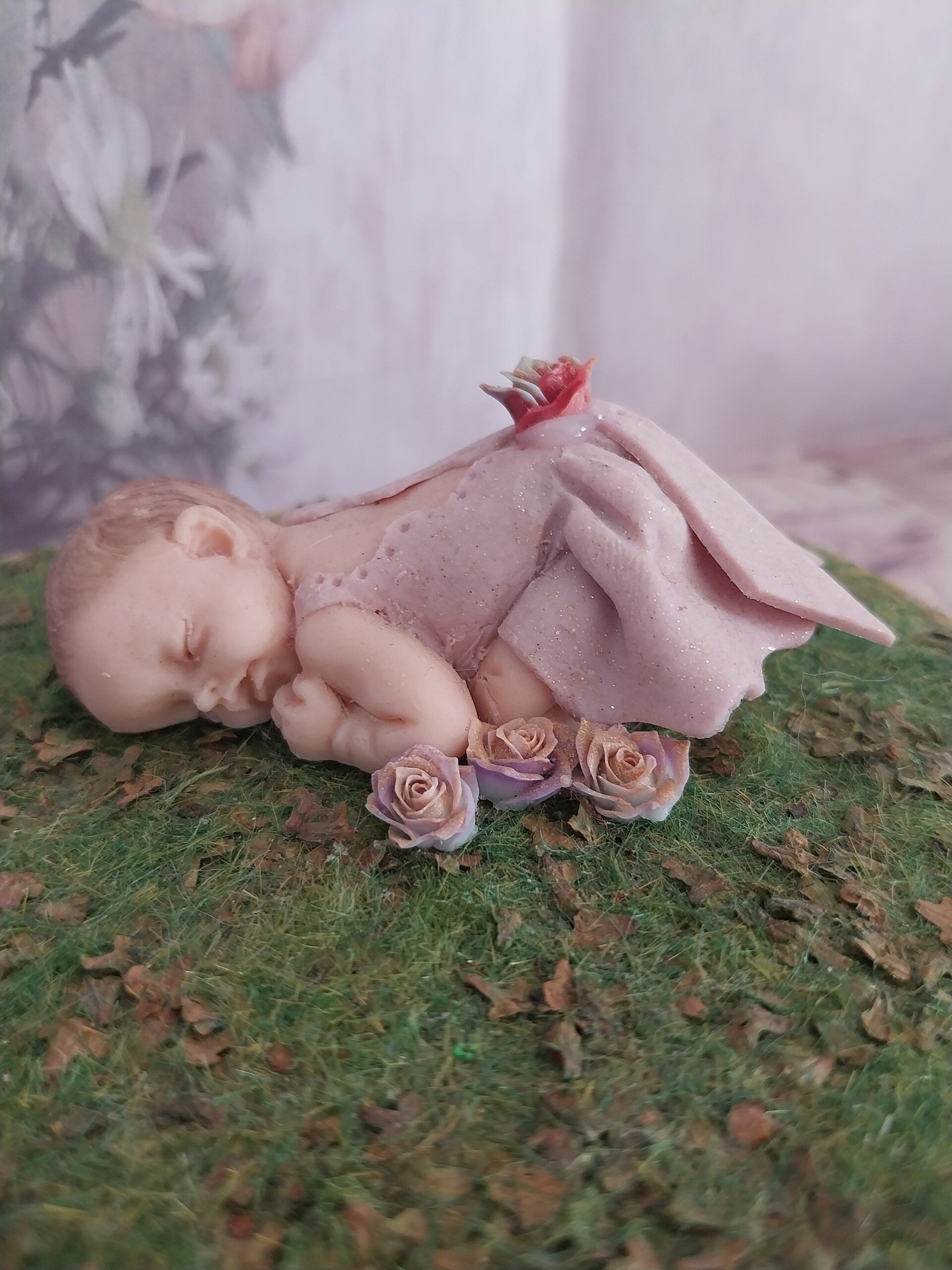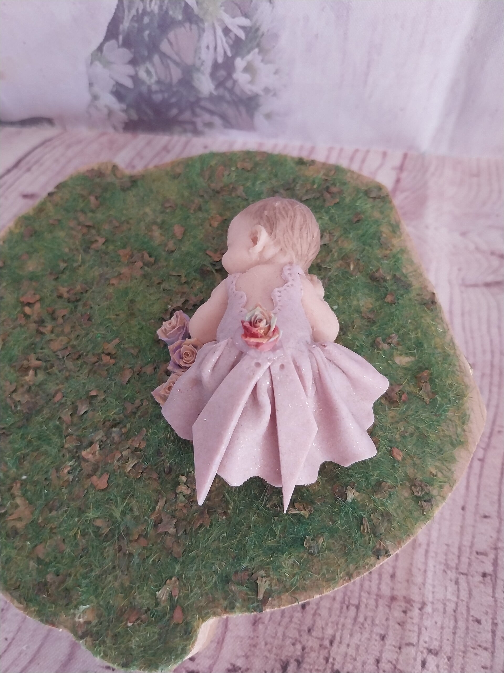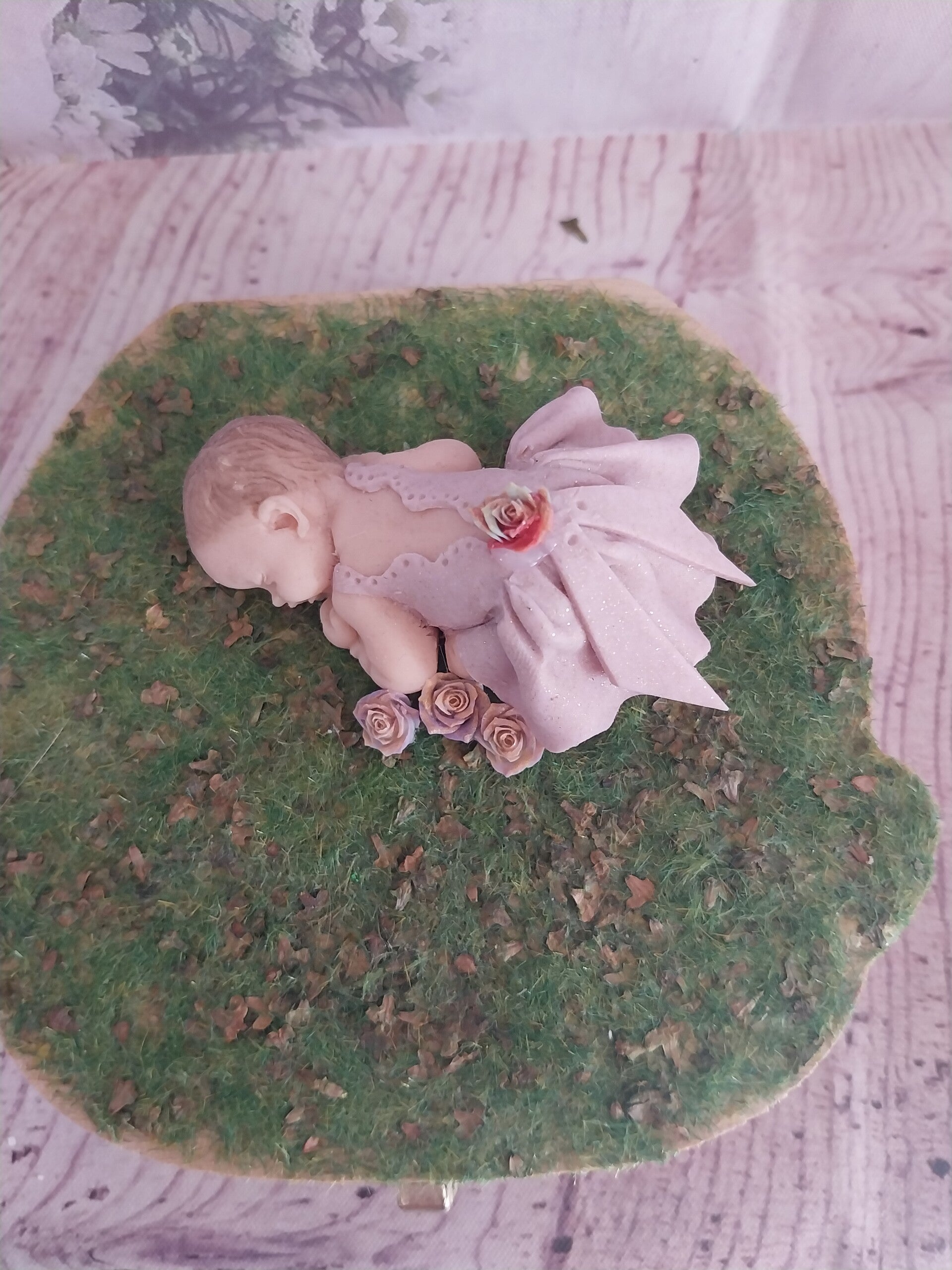 Décoré avec une figurine fille en fimo robe rose doré