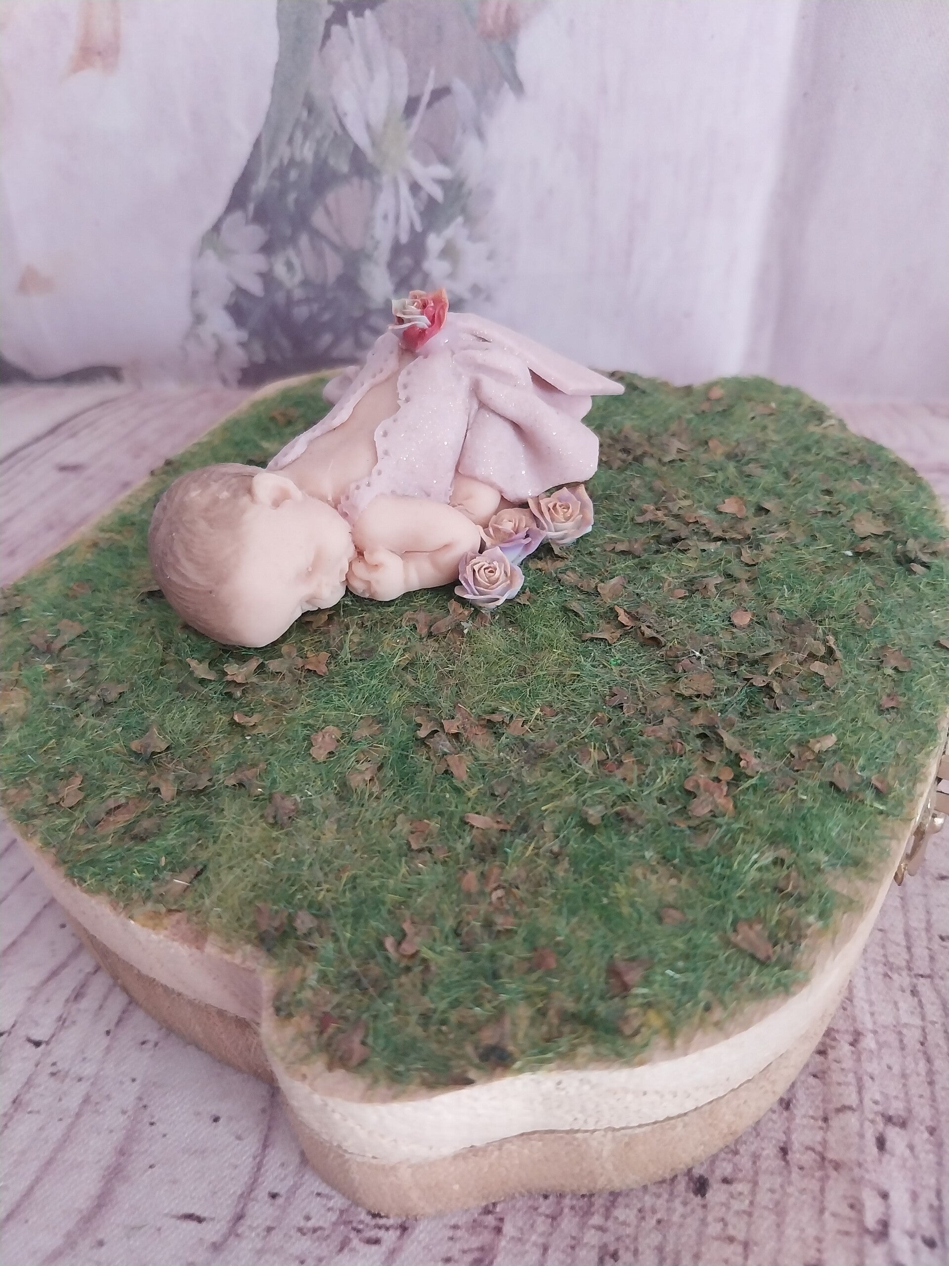 Mesures de la boîte sans bébé fimo : 12,5cm sur 12 cm sur 2,5 cm, hauteur avec bébé fimo 6cm.