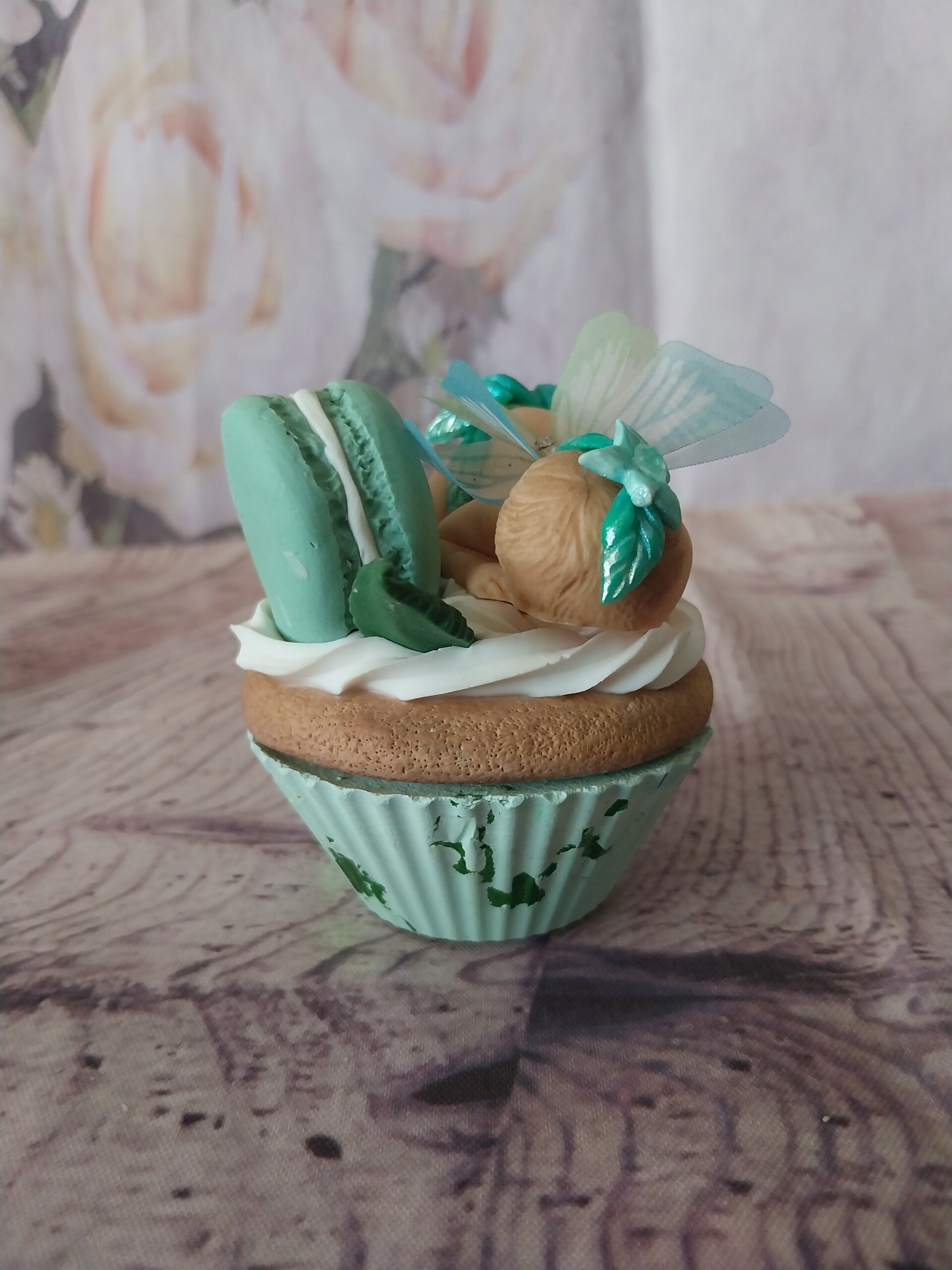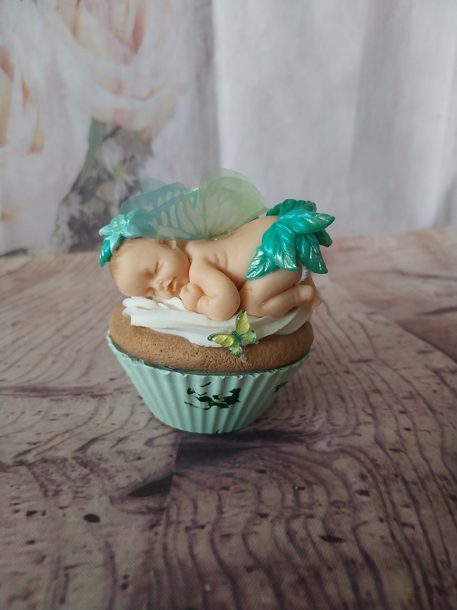 Figurine bébé fimo fille papillon sur un cupcake en plâtre céramique et fimo