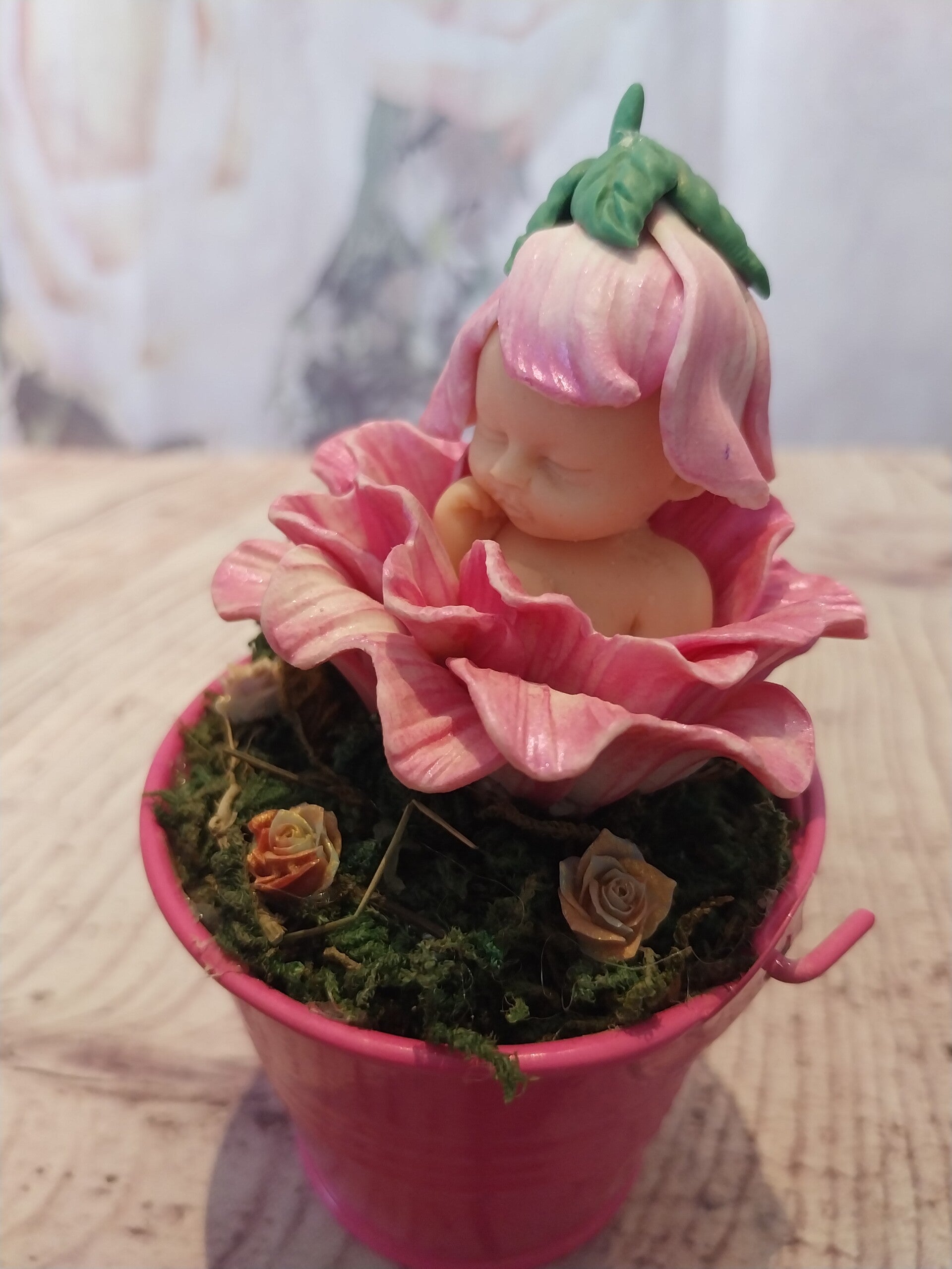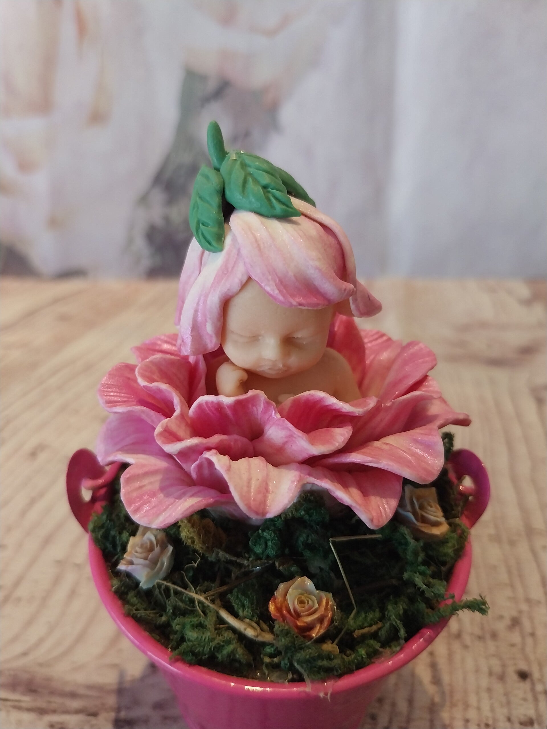 Figurine bébé fimo fille fleur rose dans un petit pot en métal possible de la personnalisé avec un prénom. N'oubliez pas de me le dire si vous le souhaitez.