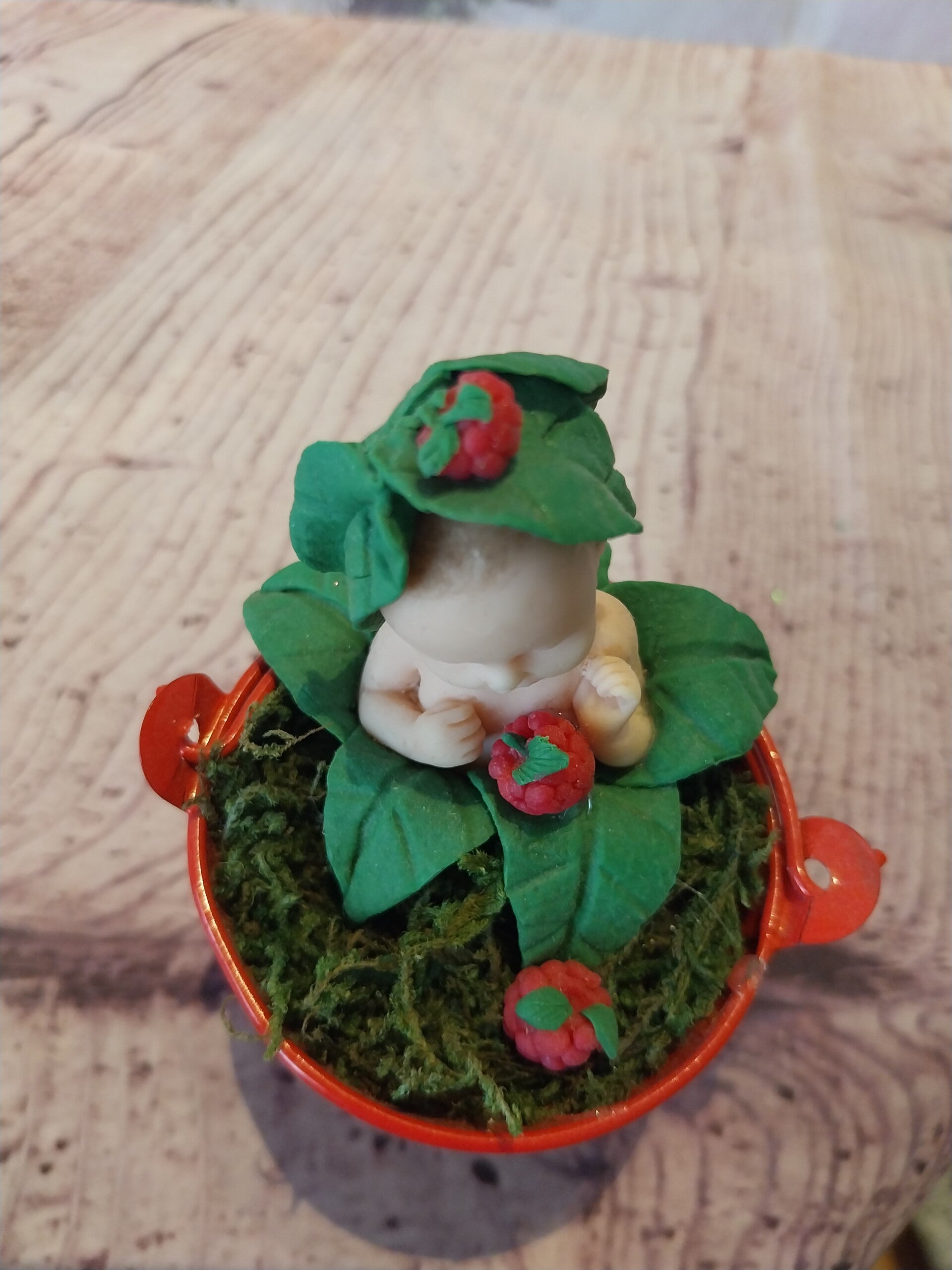 Figurine bébé fimo framboise dans un petit pot en métal possible de la personnalisé avec un prénom. N'oubliez pas de me le dire si vous le souhaitez.