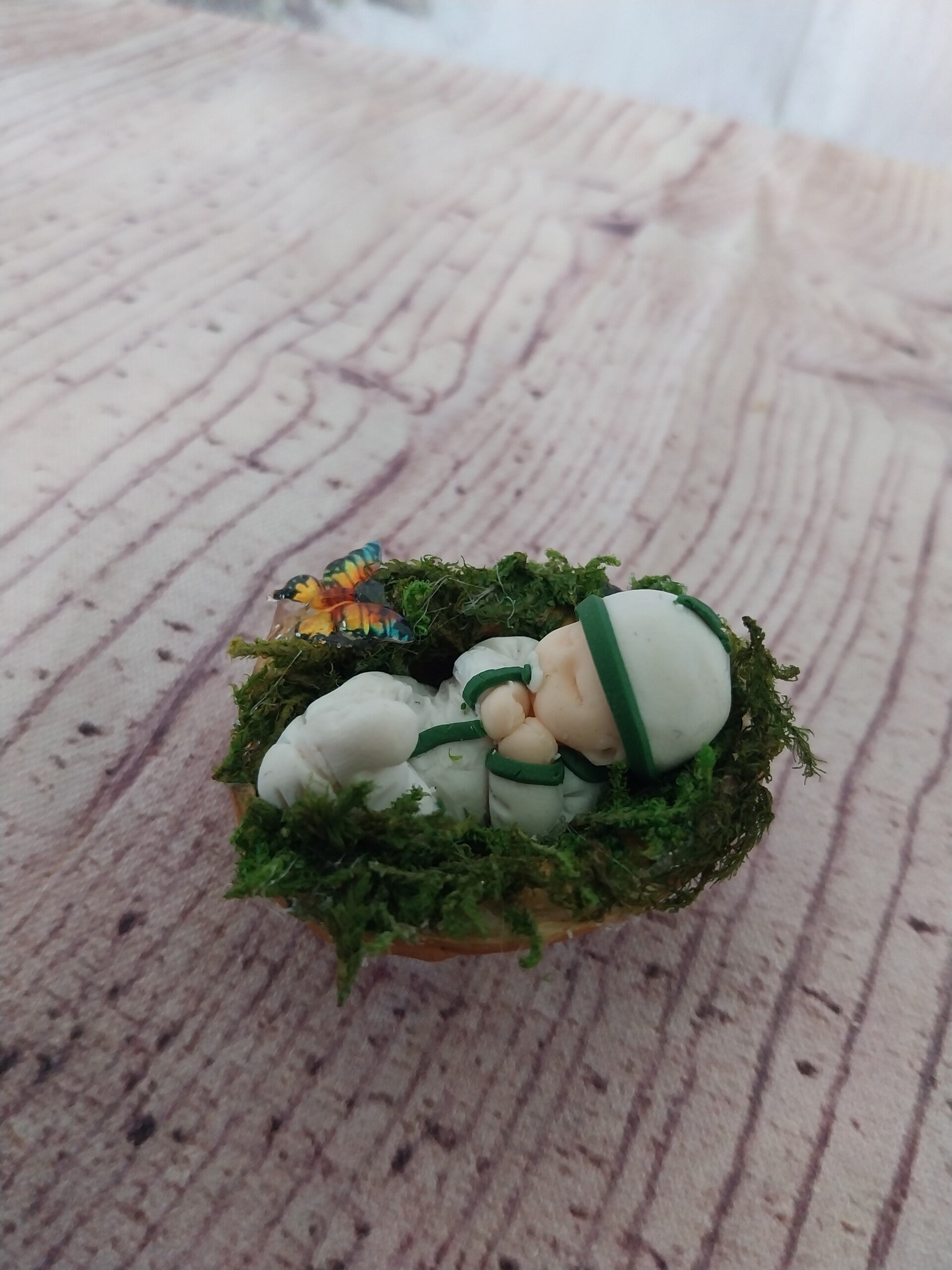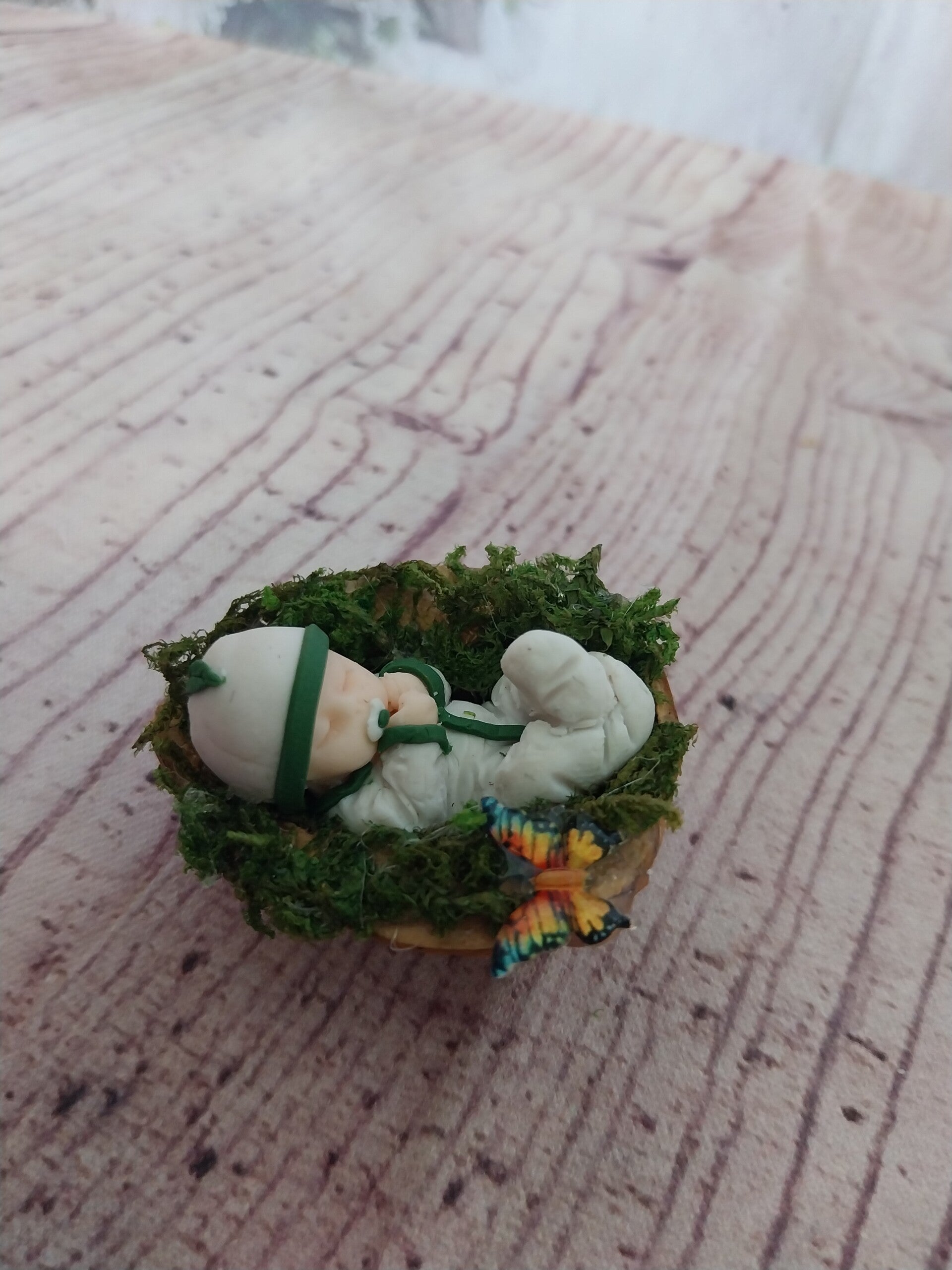 Miniature bébé fimo dans une noix