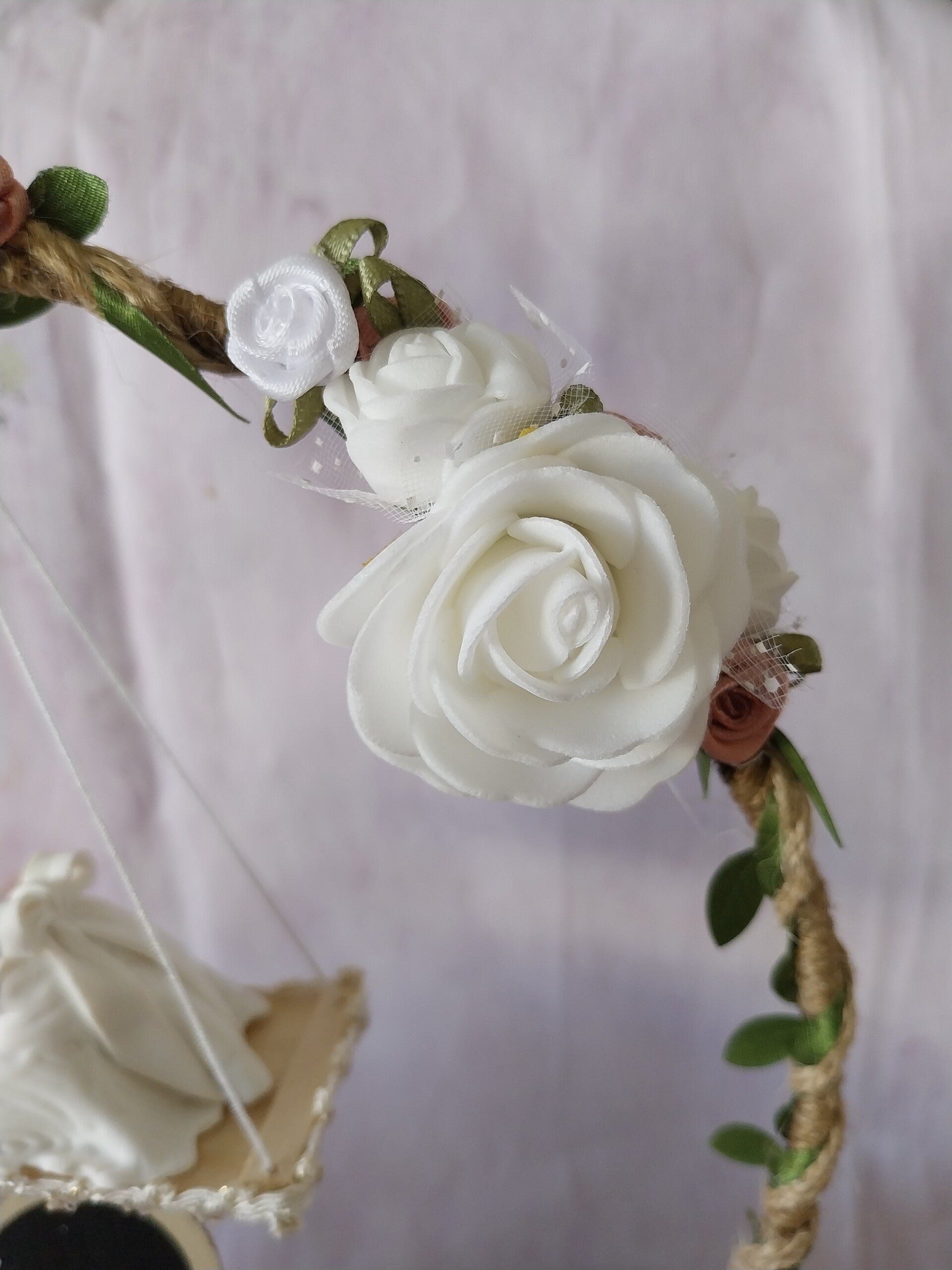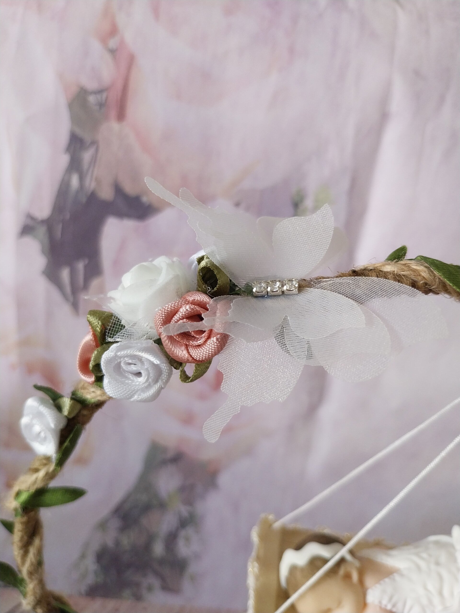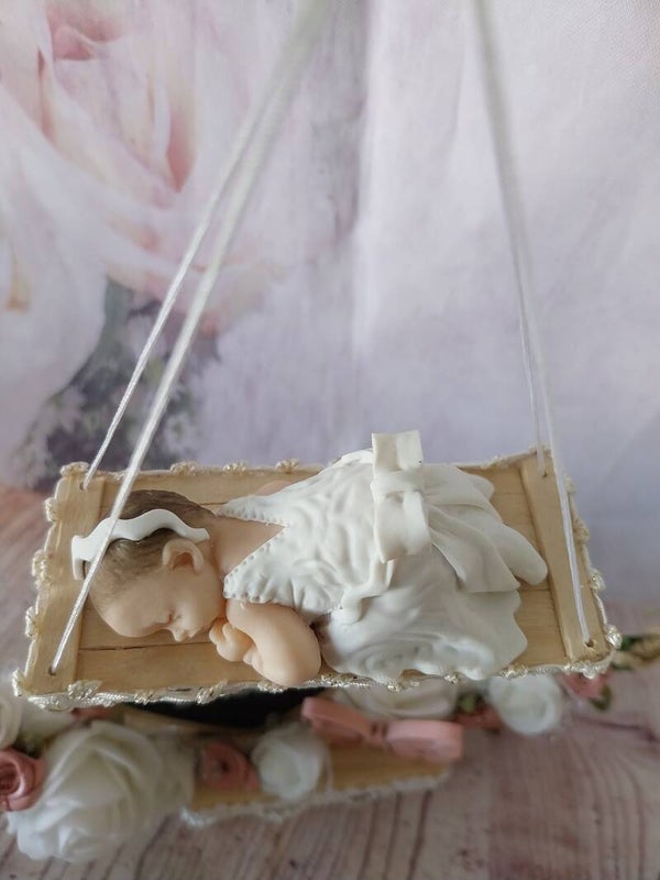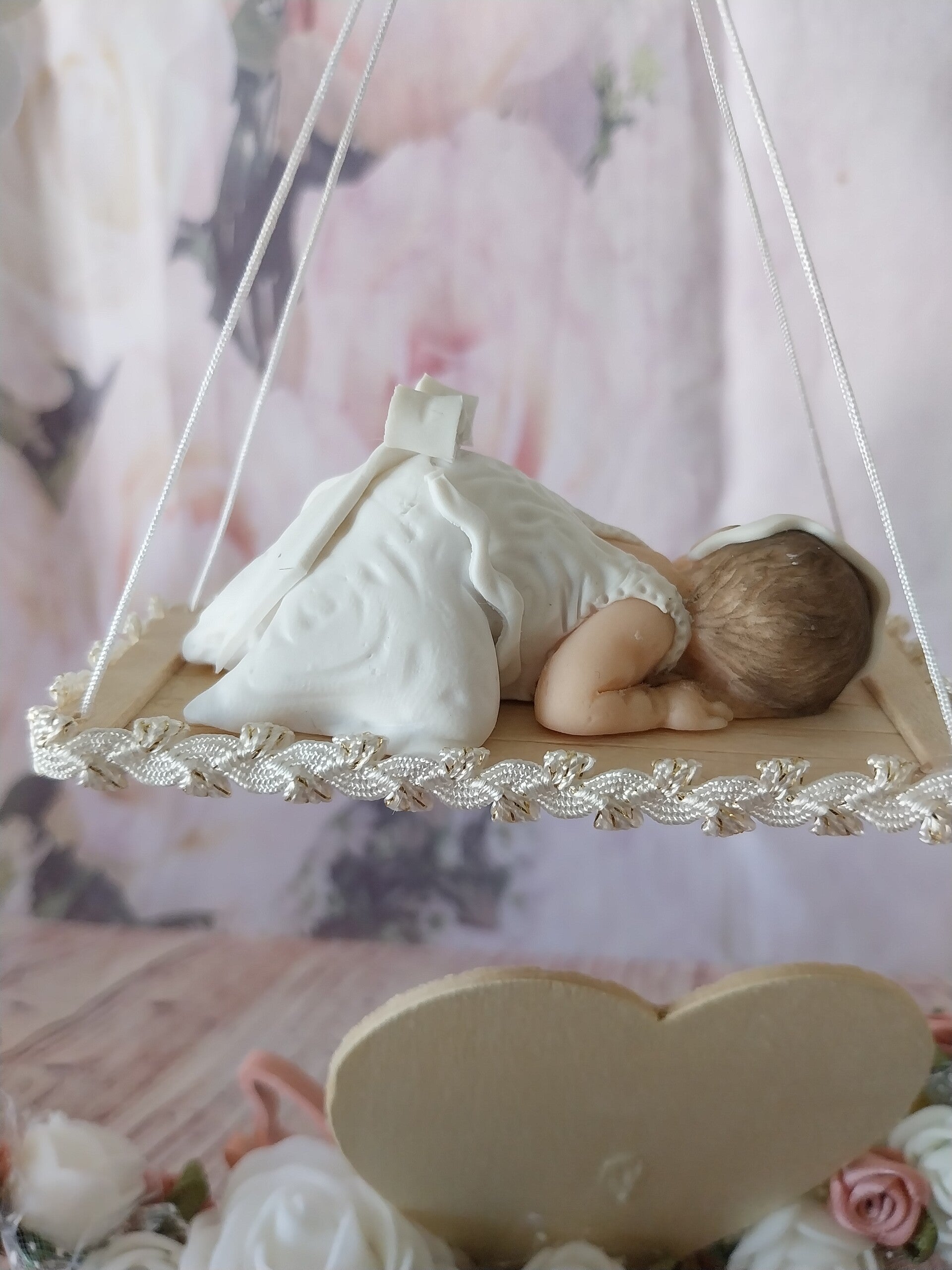 Centre de table avec figurine bébé fimo fille.